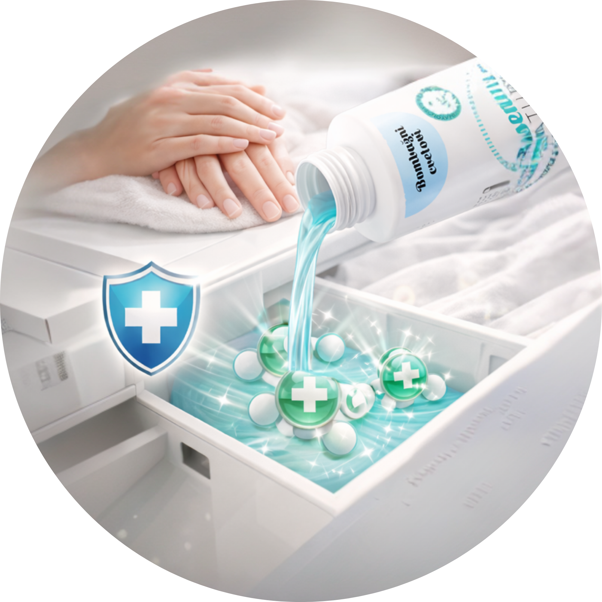 Desinfektionswirkung: Spezielle Formel mit quartären Salzen, die für eine höhere Hygiene Ihrer Kleidung für die ganze Familie sorgt.