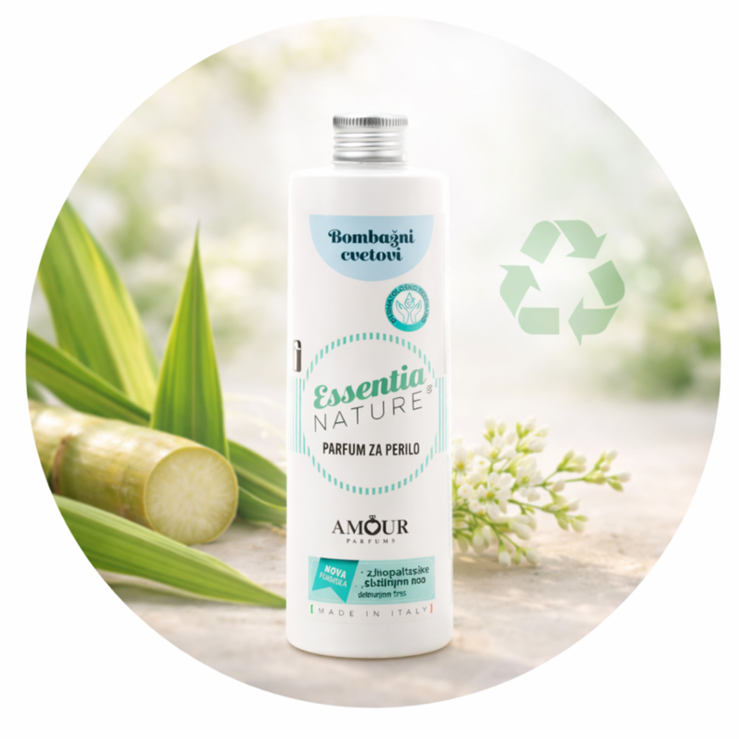 Na vsakih 5–7 kg perila dodajte 10 do 20 ml izdelka neposredno v predal za mehčalec pralnega stroja, količino pa prilagodite glede na želeno intenzivnost vonja (1 pokrovček = 5 ml). Za najboljše rezultate priporočamo kombinacijo z nevtralnim mehčalcem ESSENTIA Nature®. Dišava ostane nespremenjena tudi če uporabljate sušilni stroj. Bodite previdni, saj lahko eterična olja vplivajo na plastiko; morebitna razlitja takoj očistite.
